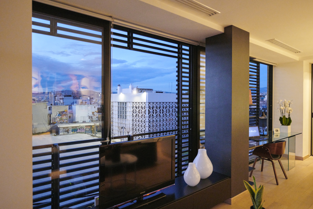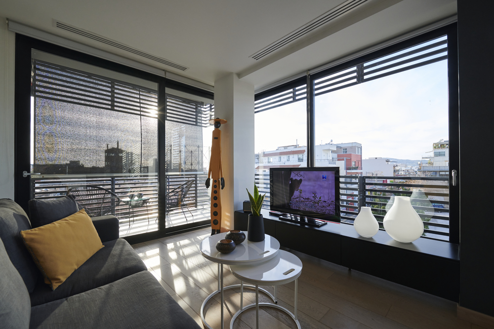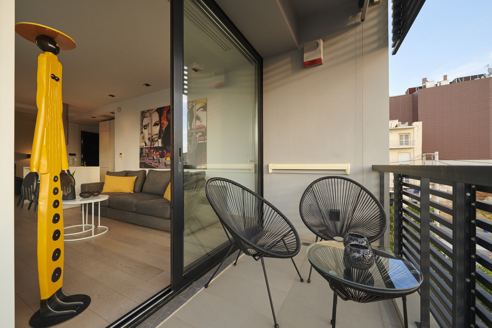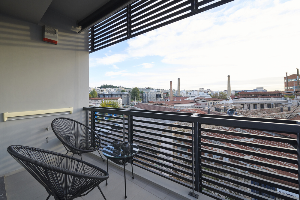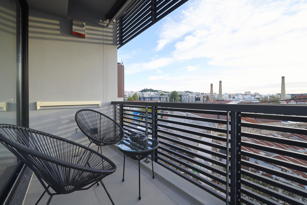 - Balcony with great views to Technopolis and the National Observatory. It has 2 comfortable chairs where you can relax and enjoy your wine watching the beautiful sunset,
