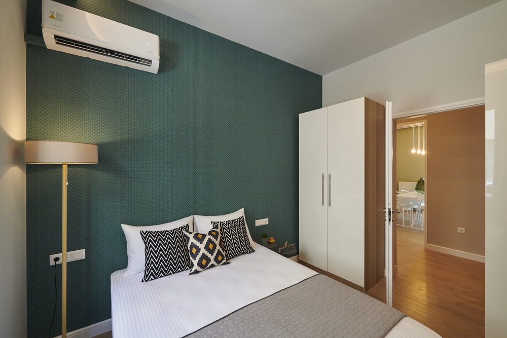 - 2 Bedrooms with a queen size double beds with anatomic mattresses, pillows and all-weather quilts. There is a large closet with hangers for your clothes and personal items,