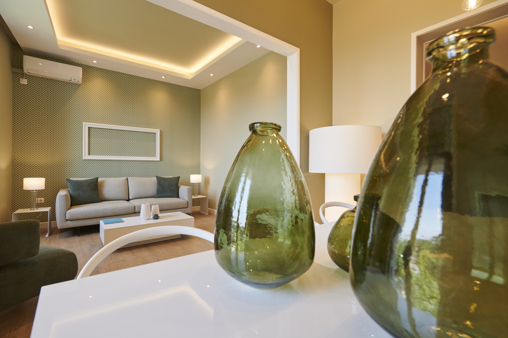 - Living room with a comfortable Italian design sofa and armchair overlooking all the magnificent scenery between Acropolis and Lycabettus hill. All the above can be enjoyed in a relaxing atmosphere with the help of the led spot lighting,