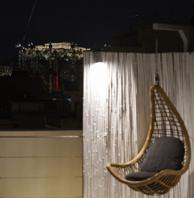 - Roof garden with fantastic views to Acropolis and Technopolis. It has 2 loungers and a big sofa where you can relax and enjoy your cocktails watching the beautiful sunset,